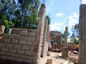 We have been extremely impressed with the speed at which the building has progressed since the team left. The building process in Kenya is extremely labour intensive since they lack the modern building equipment that we all take for granted. The team’s gift of a commercial concrete mixer certainly improved the efficiency of the pouring of concrete for the ground floor.Prior to this purchase, the mixing of the concrete was done on the dirt ground using shovels. It is exciting to see the walls going up and the first three classrooms drawing closer to completion.